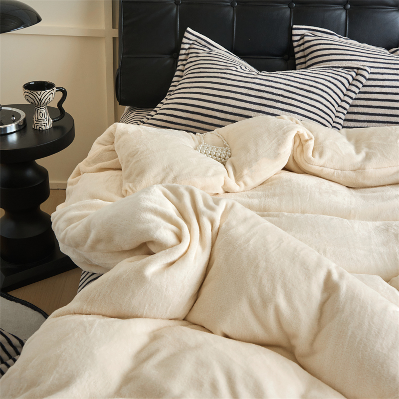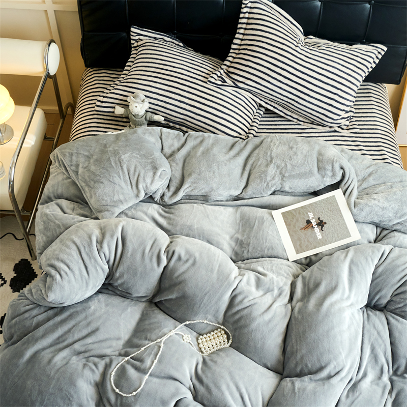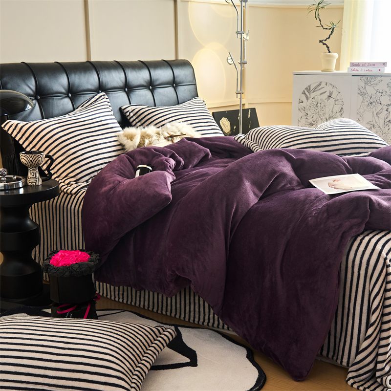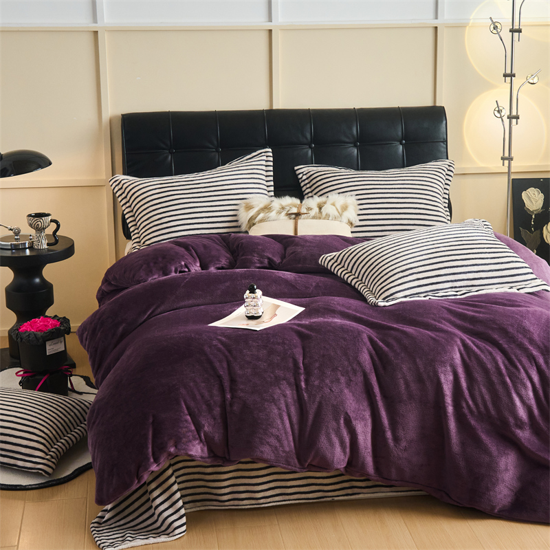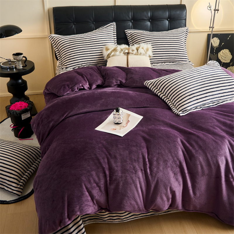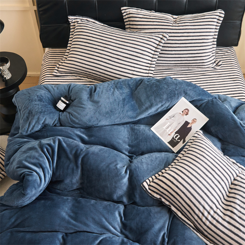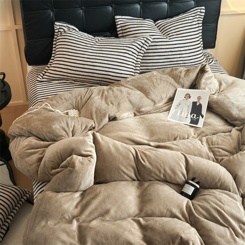 2025新款加厚保暖条纹牛奶绒四件套