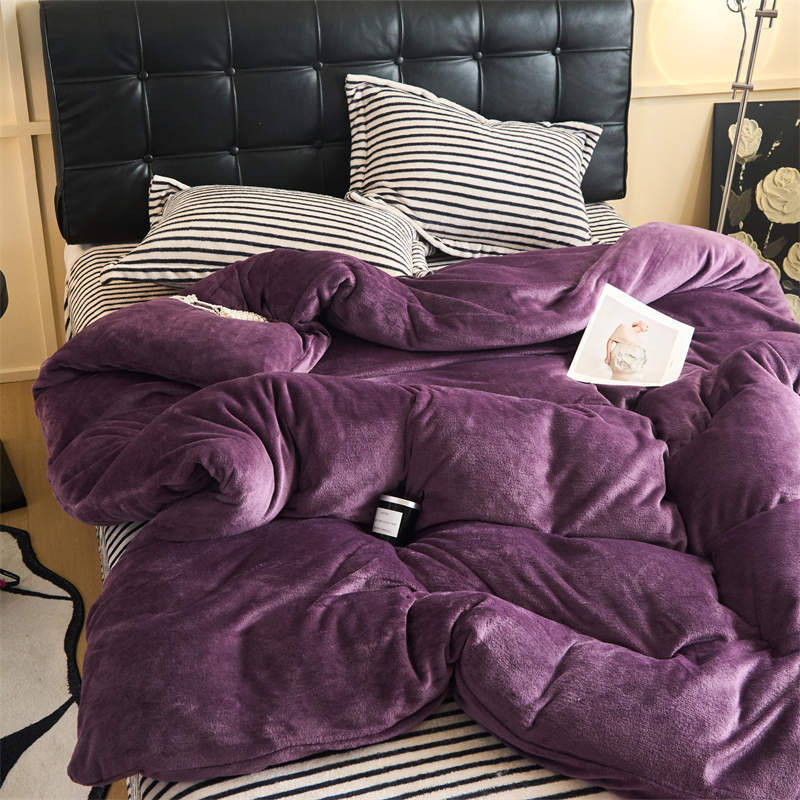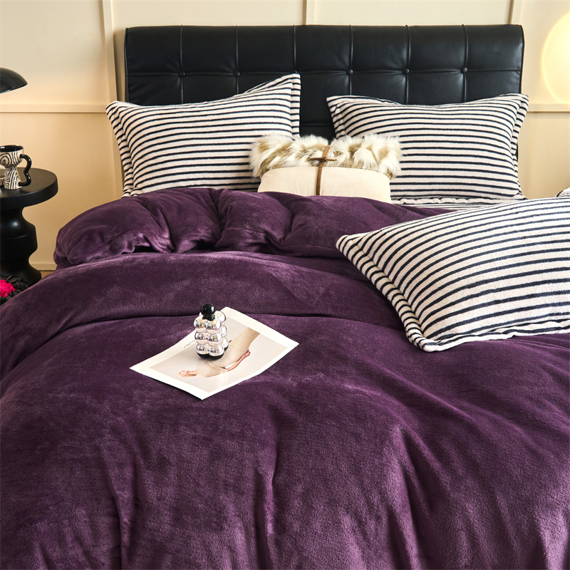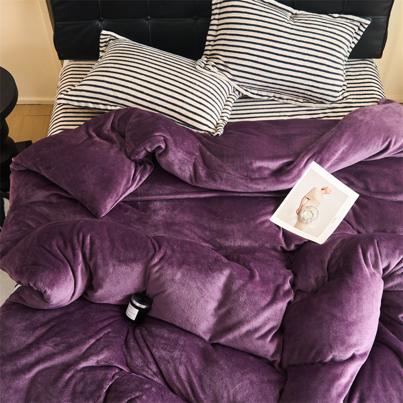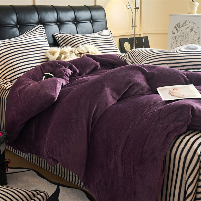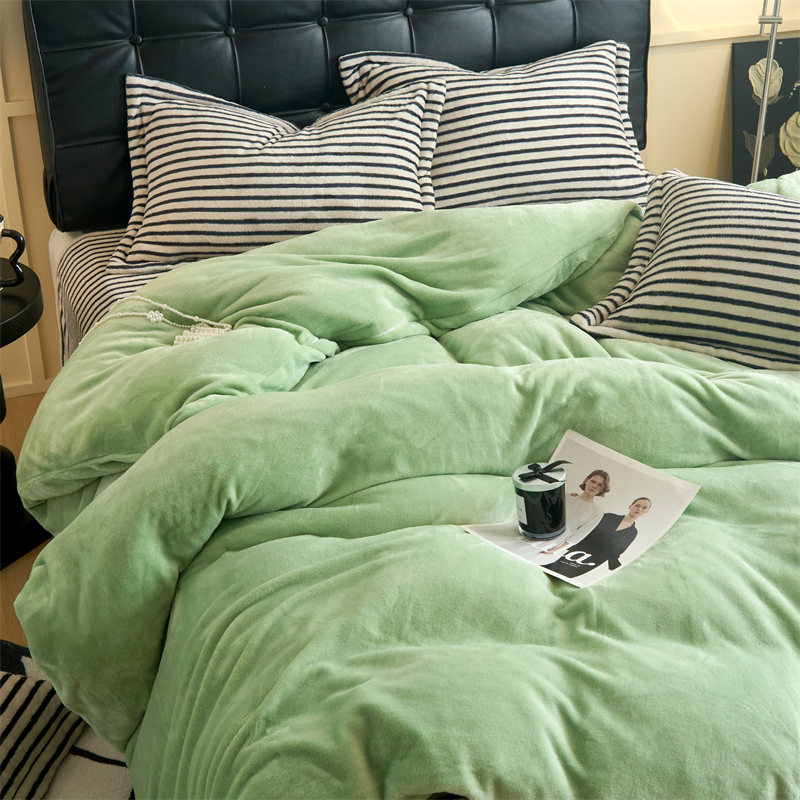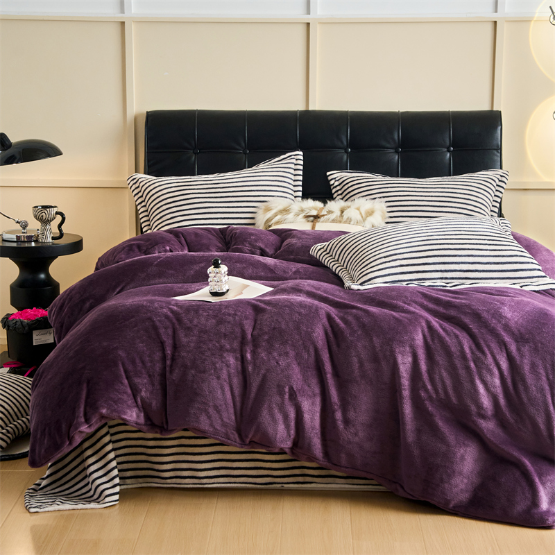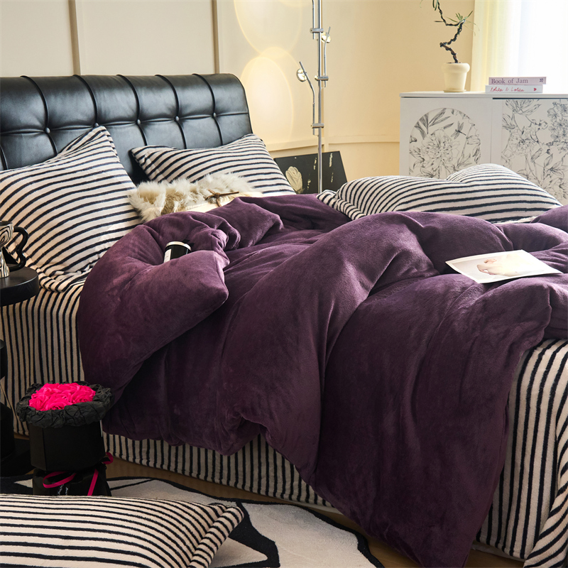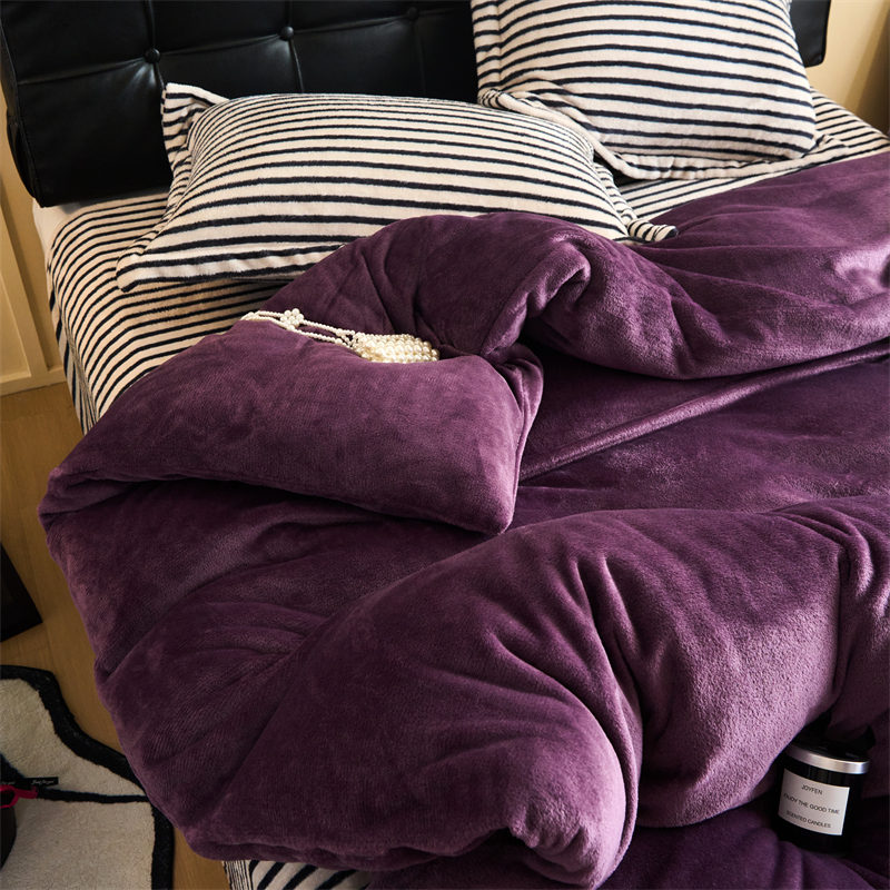 2025新款加厚保暖条纹牛奶绒四件套