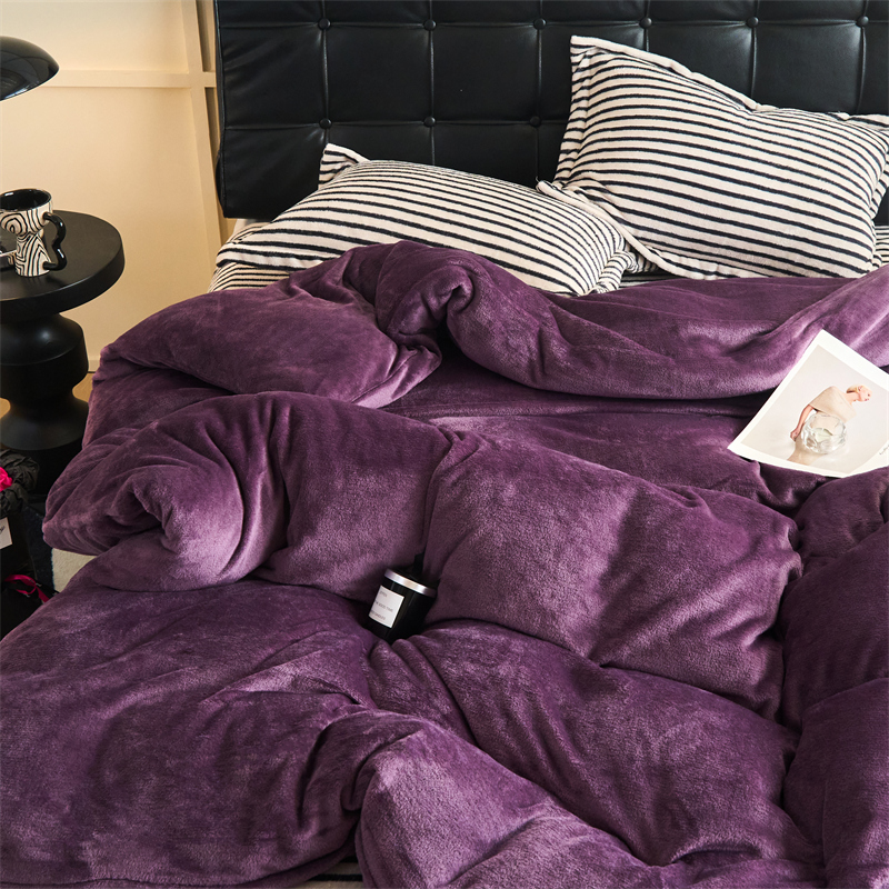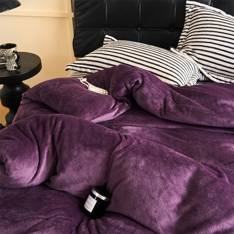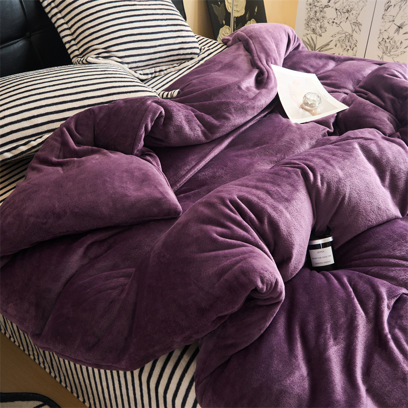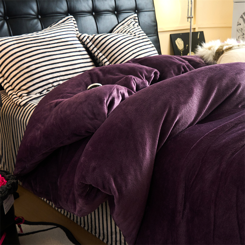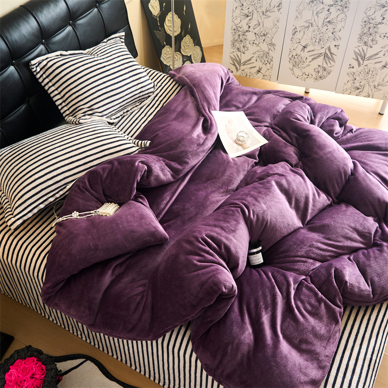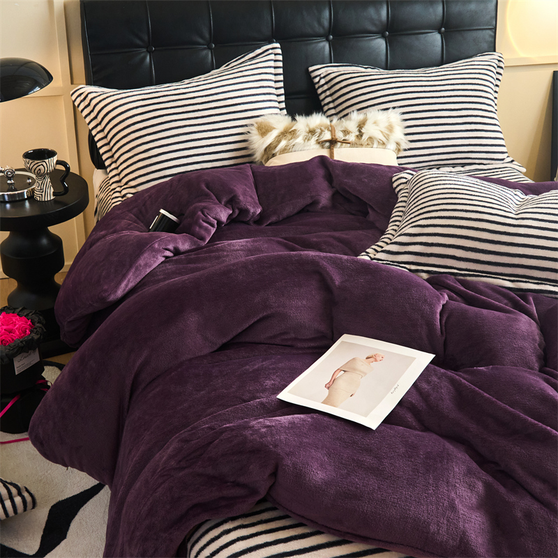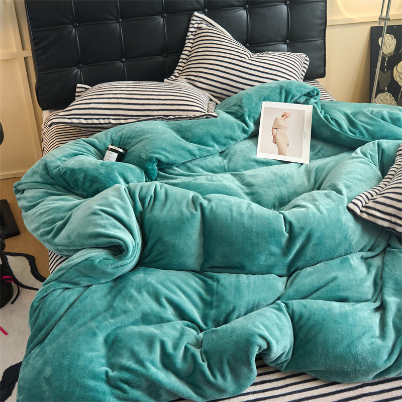 2025新款加厚保暖条纹牛奶绒四件套