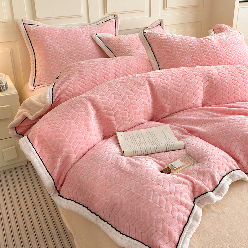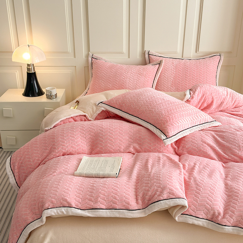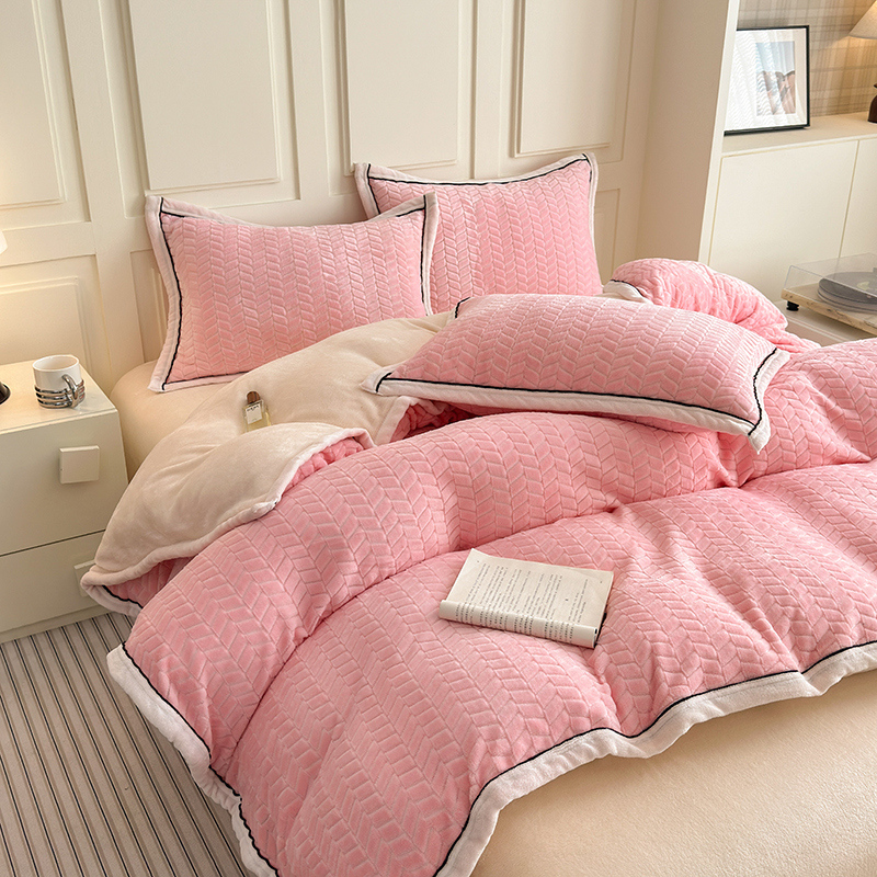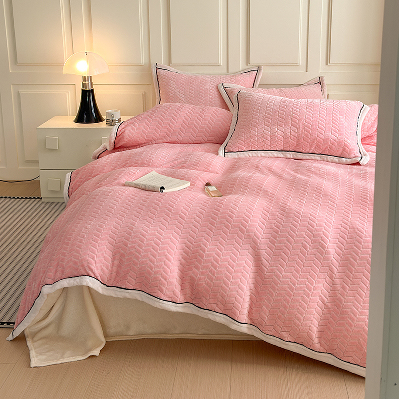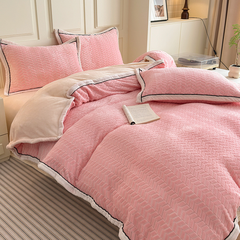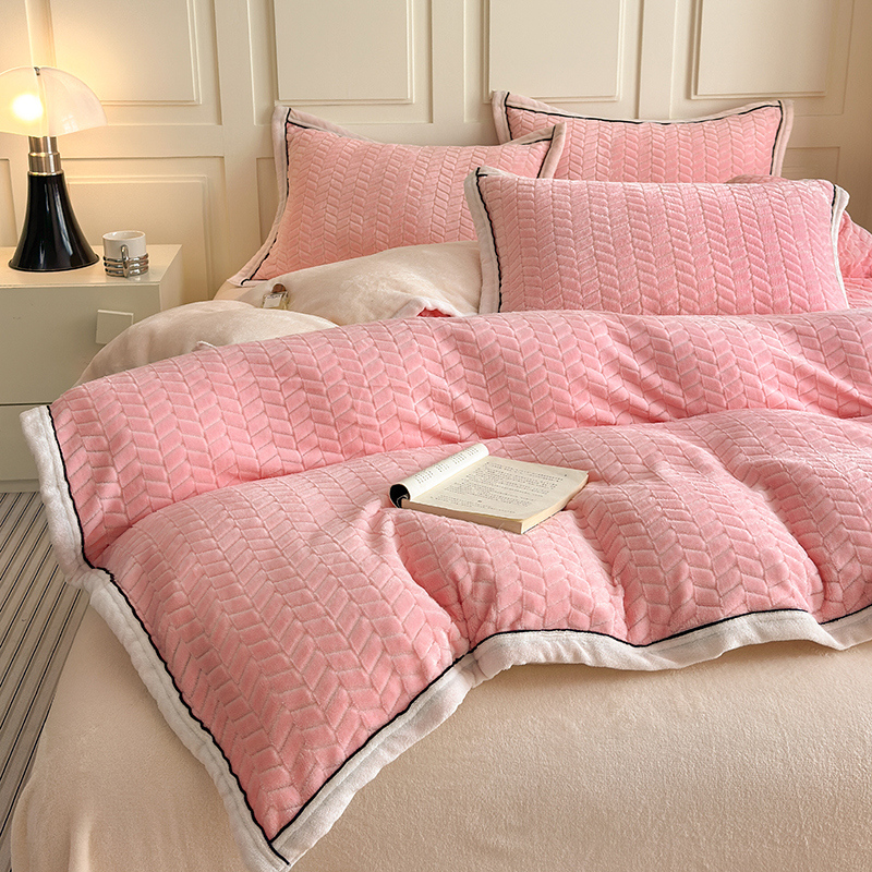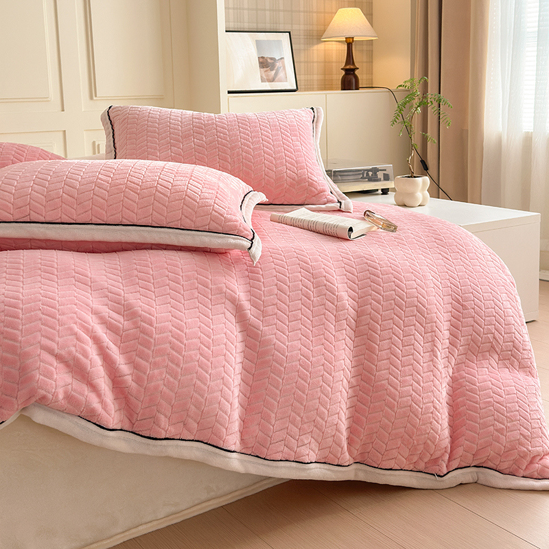 2025新款包边款色织剪花麦穗纹牛奶绒四件套