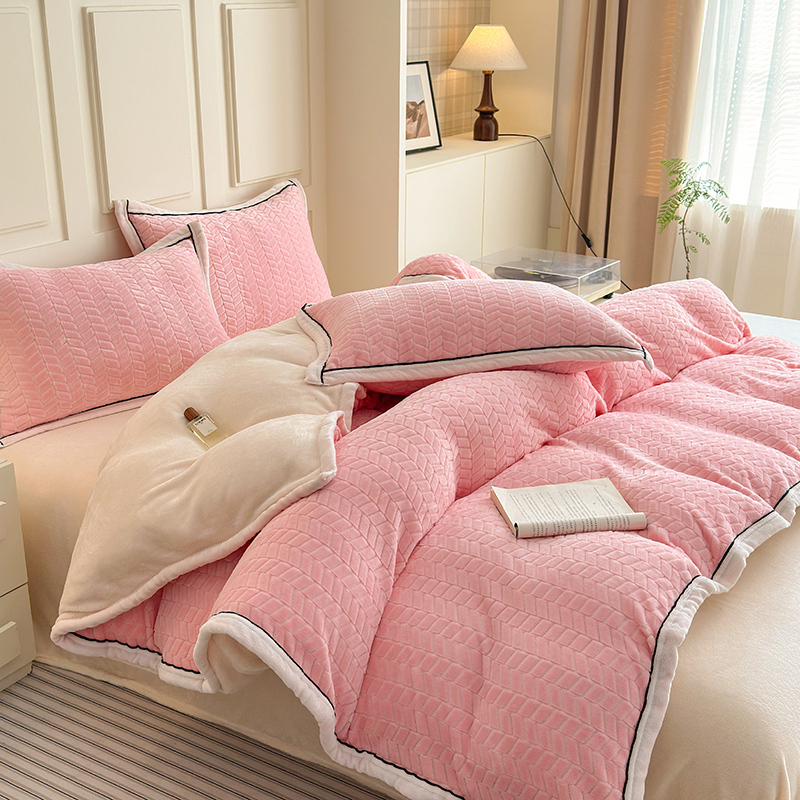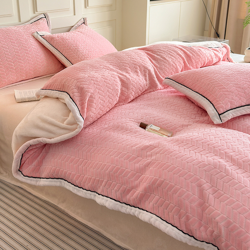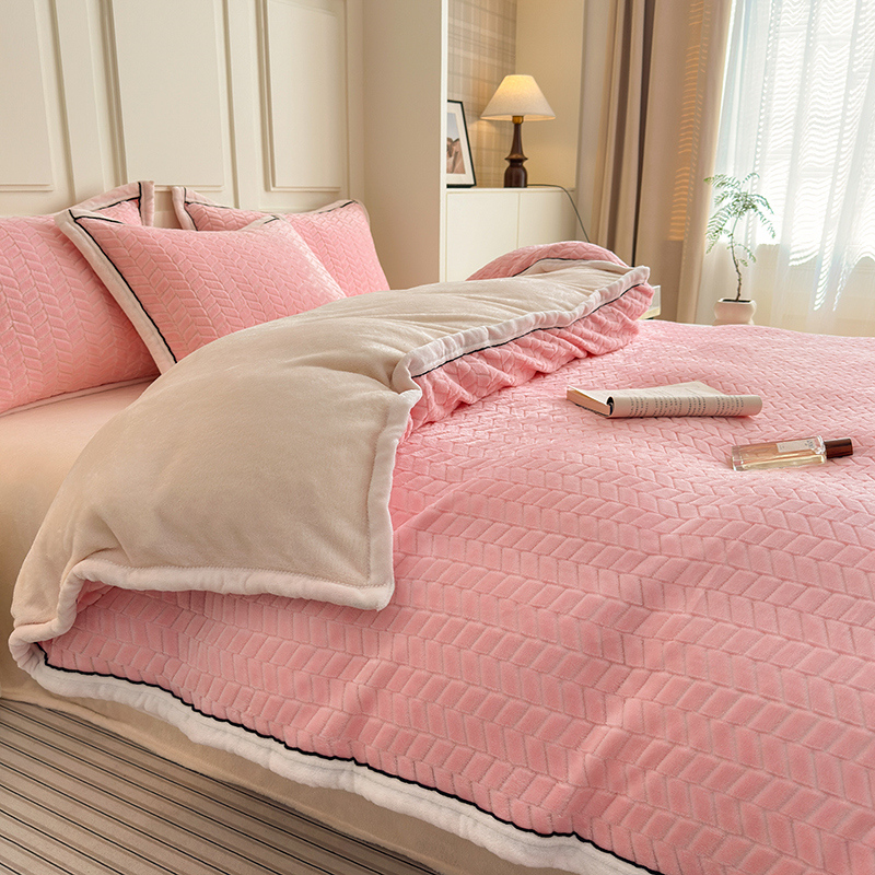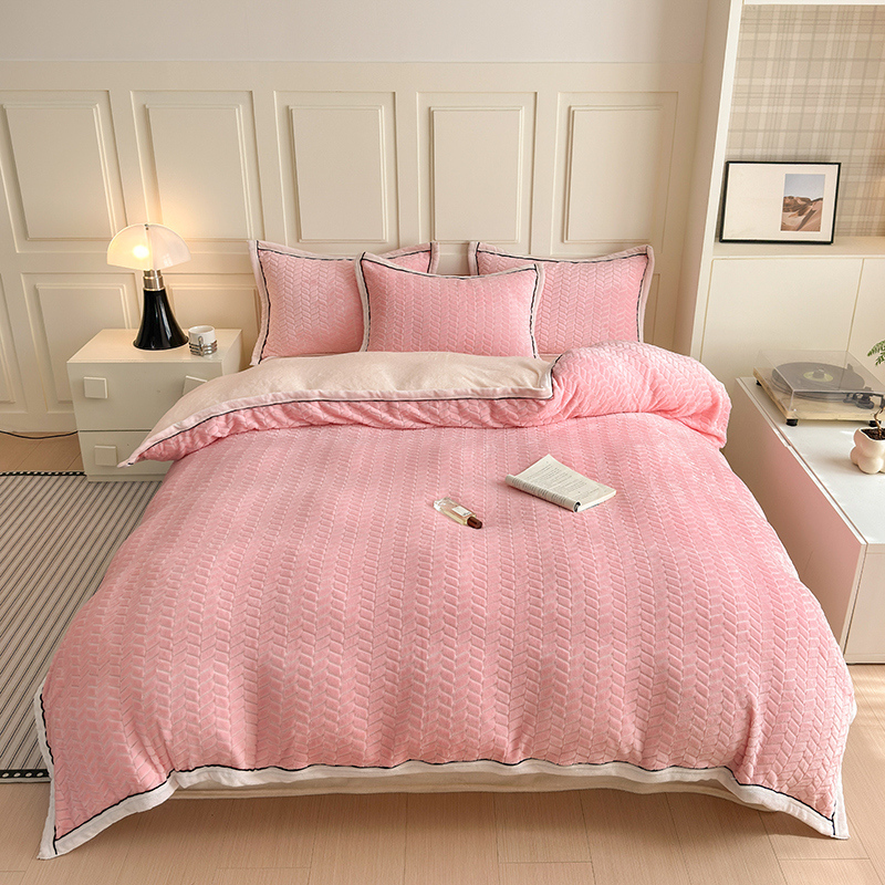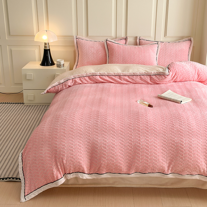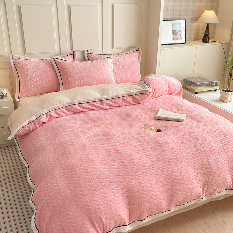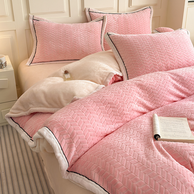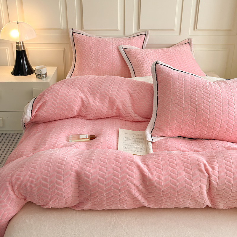 2025新款包边款色织剪花麦穗纹牛奶绒四件套