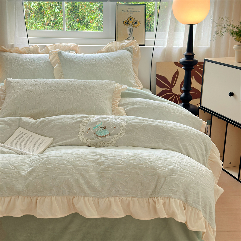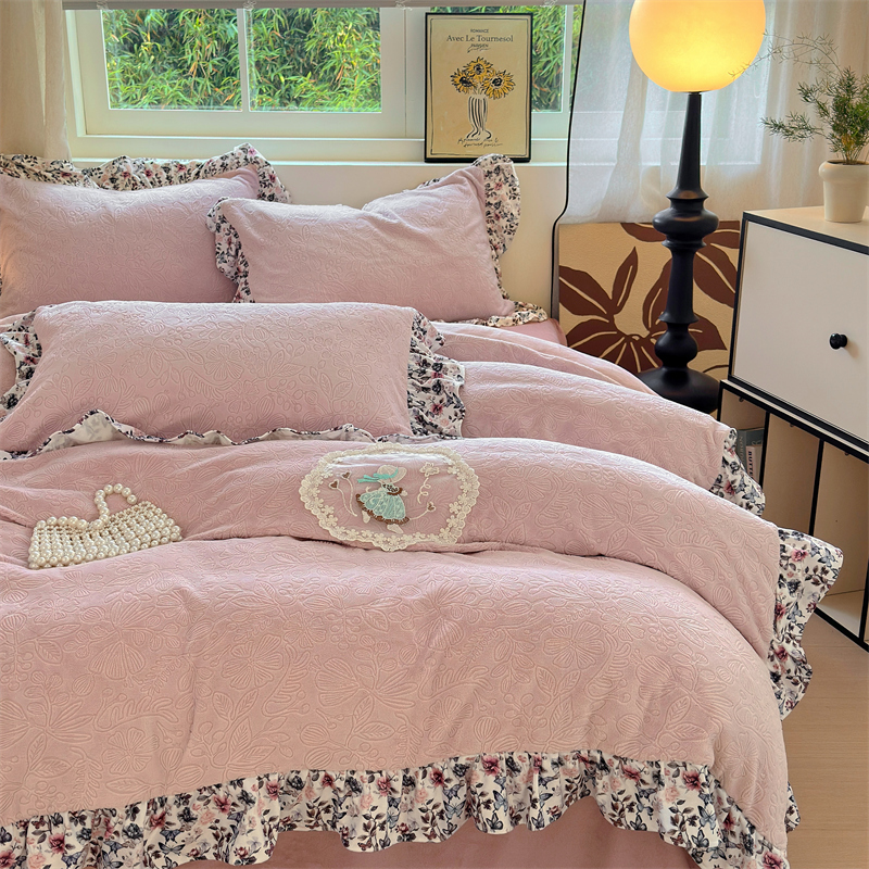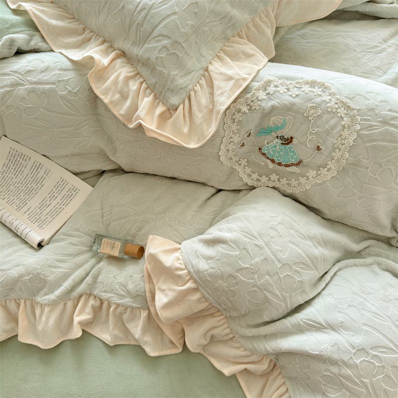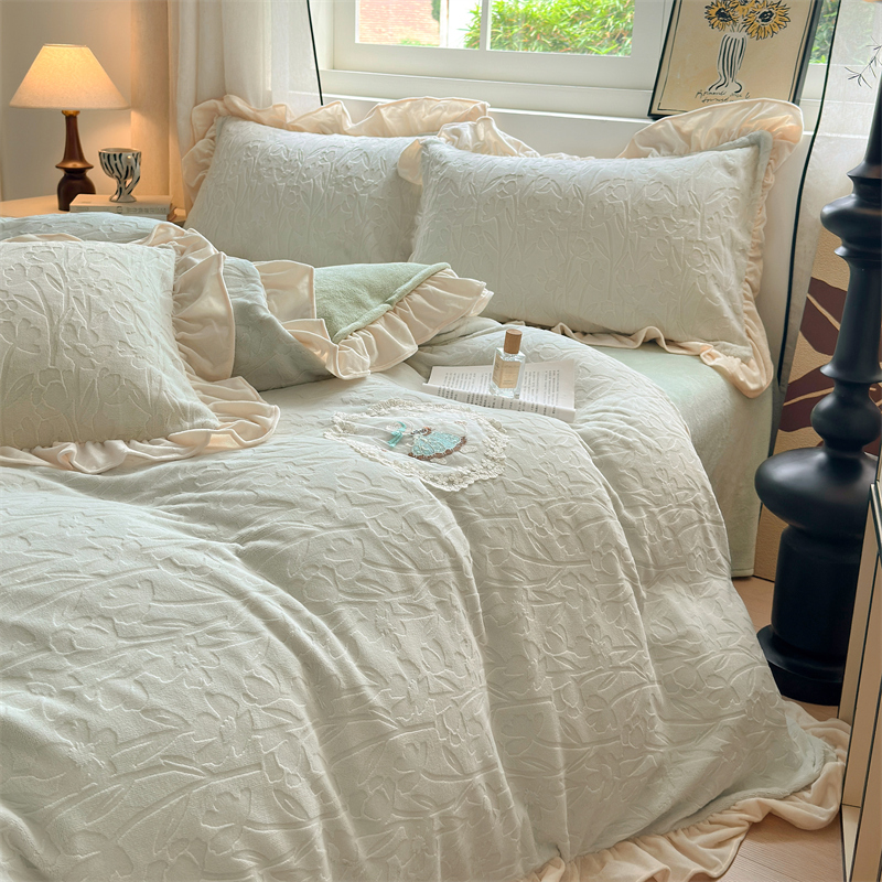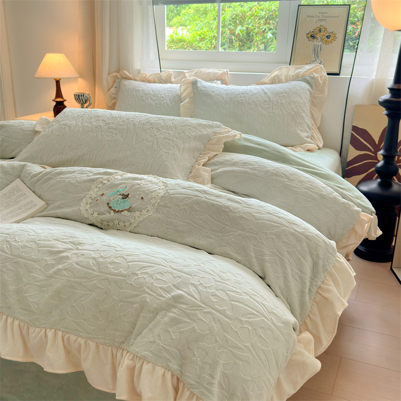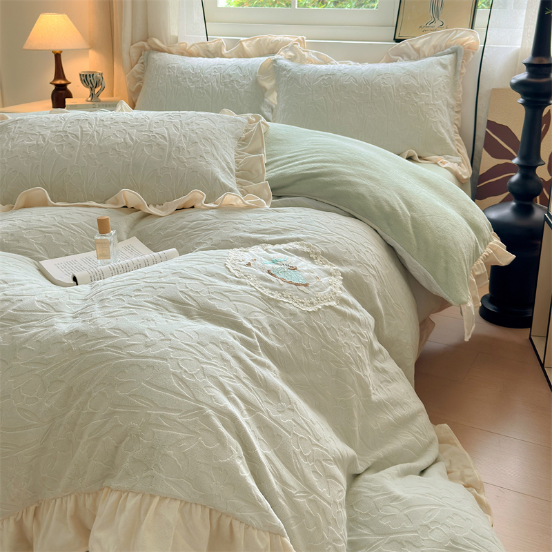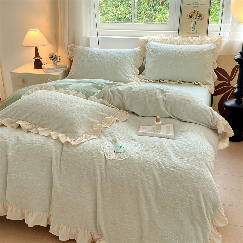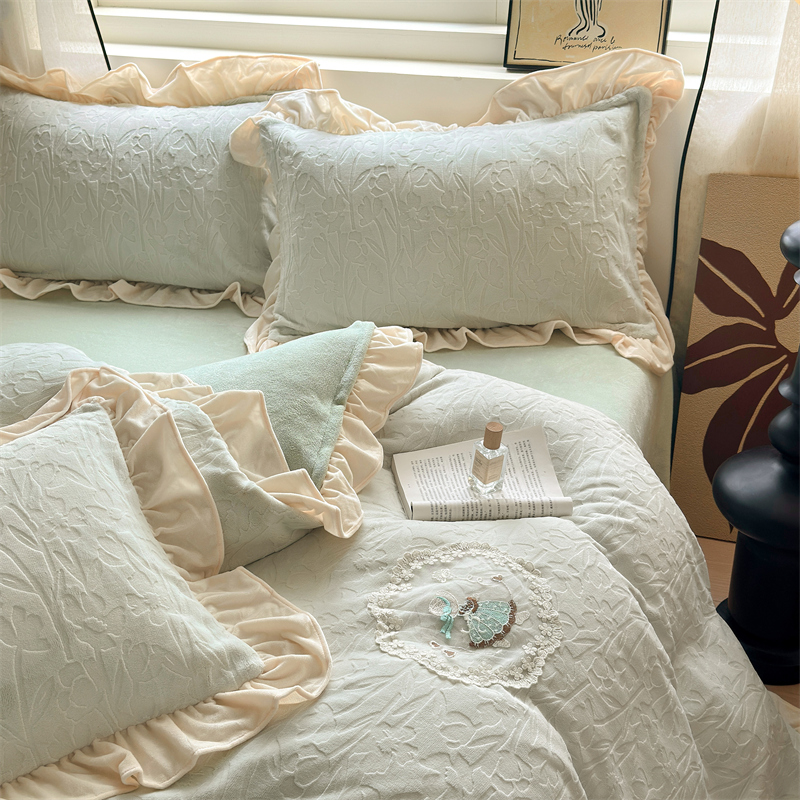 2025新款蝴蝶花边款剪花提花牛奶绒四件套(含买家秀和质检报告)