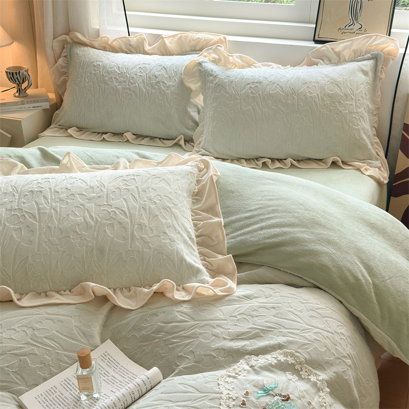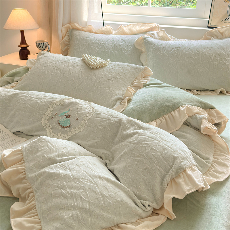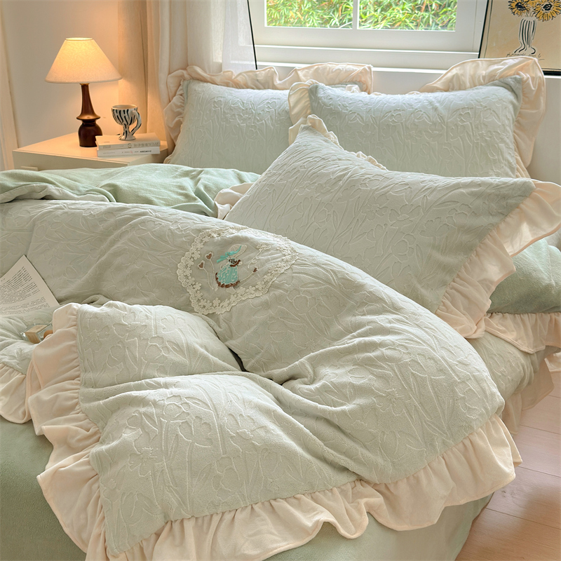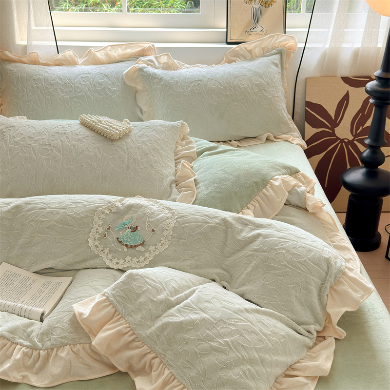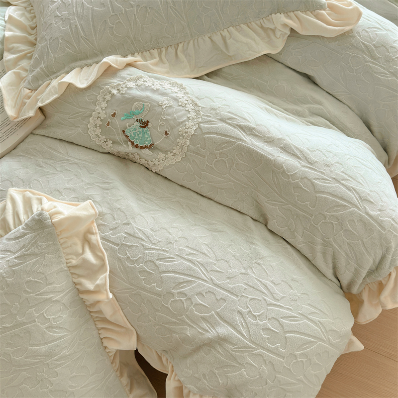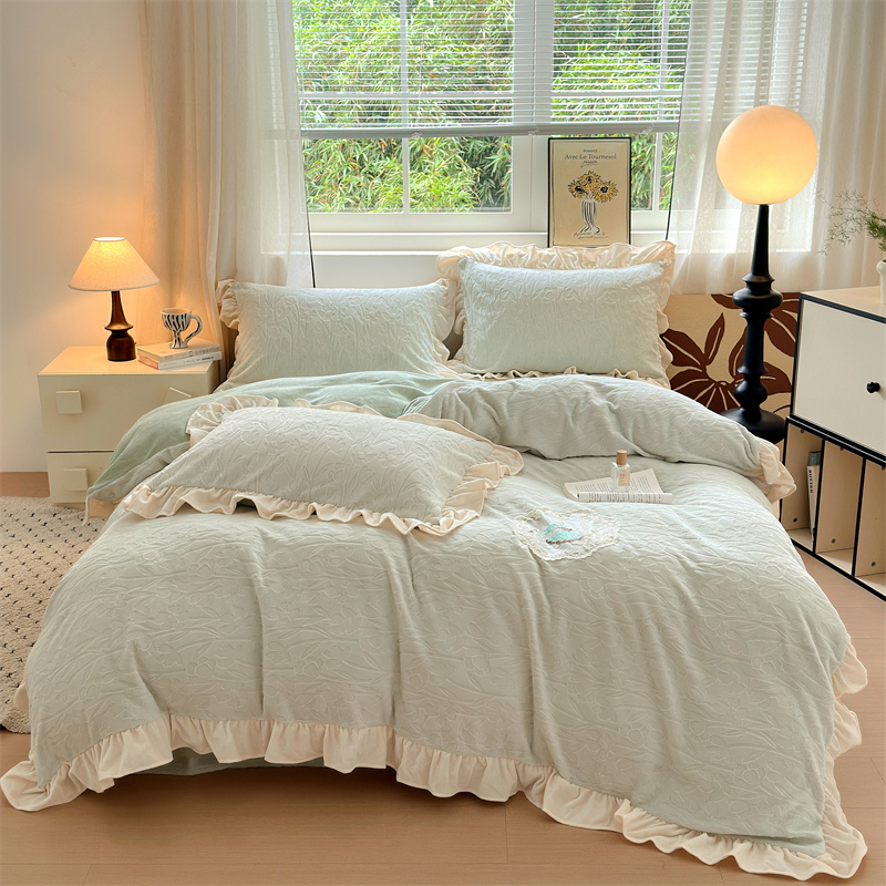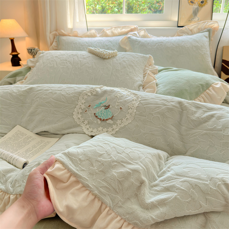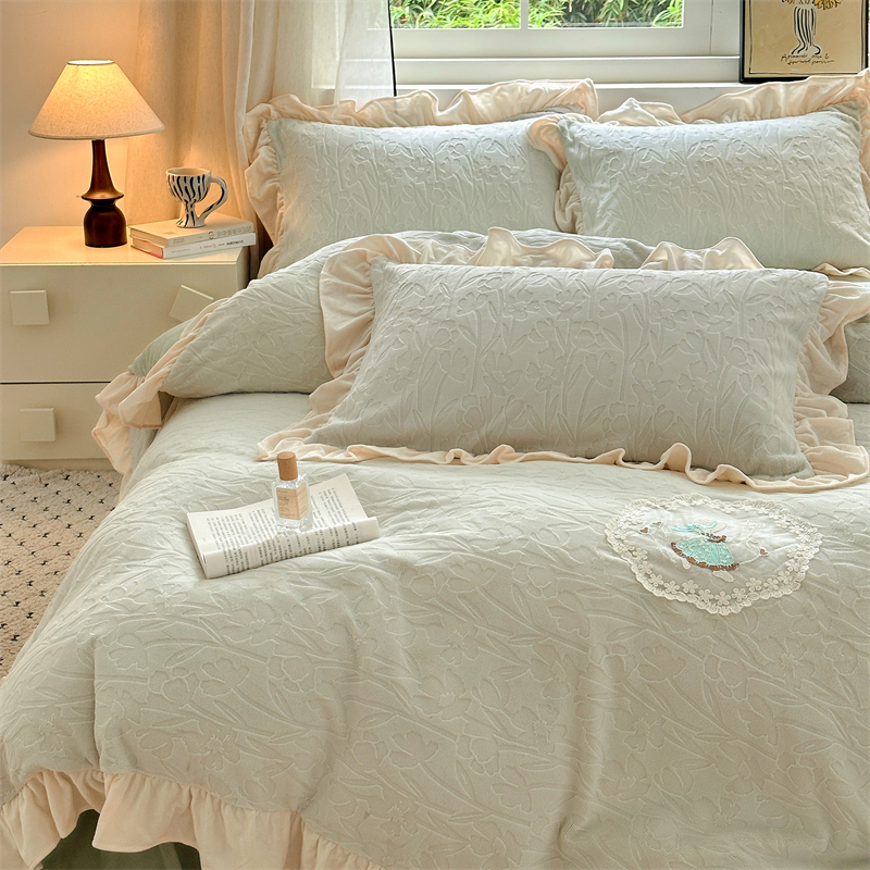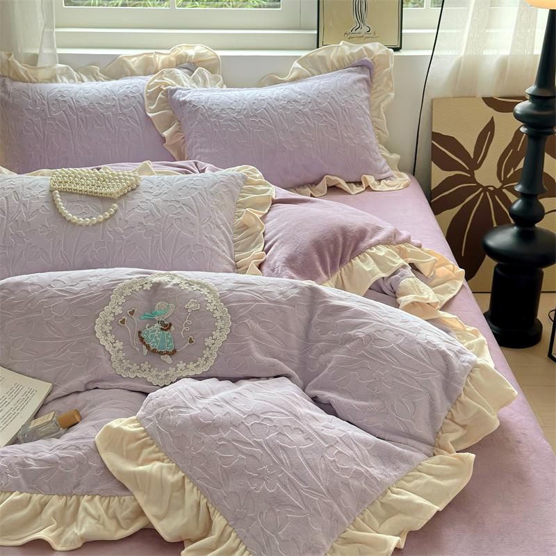 2025新款蝴蝶花边款剪花提花牛奶绒四件套(含买家秀和质检报告)