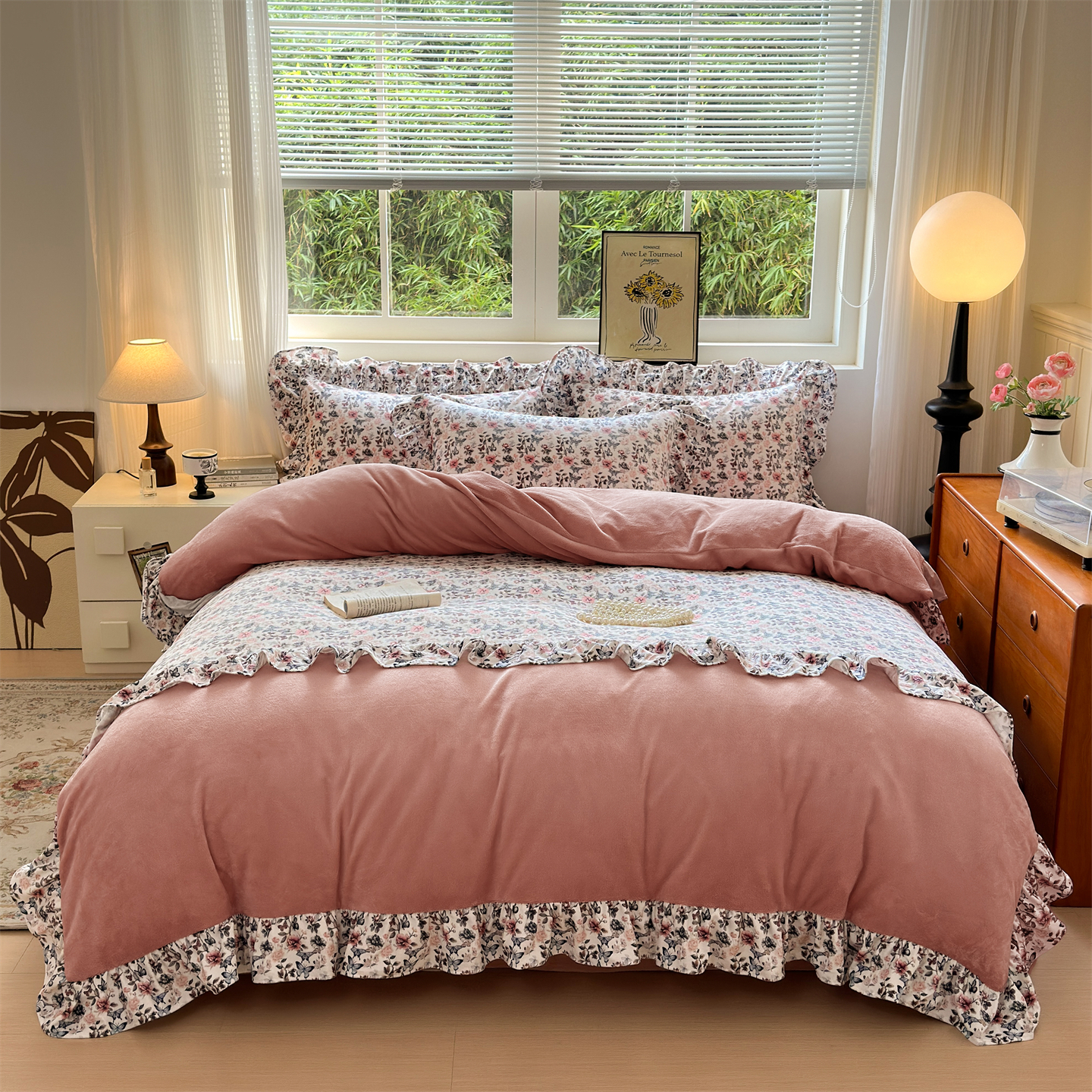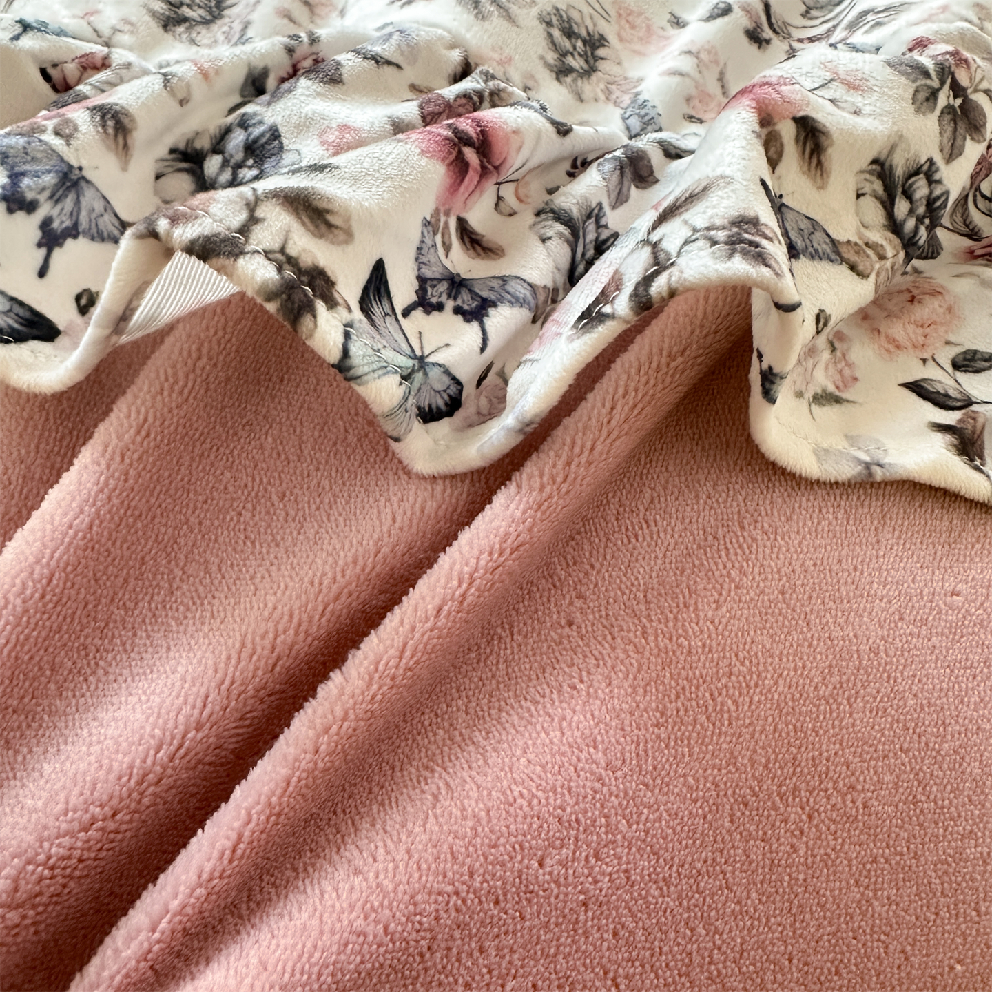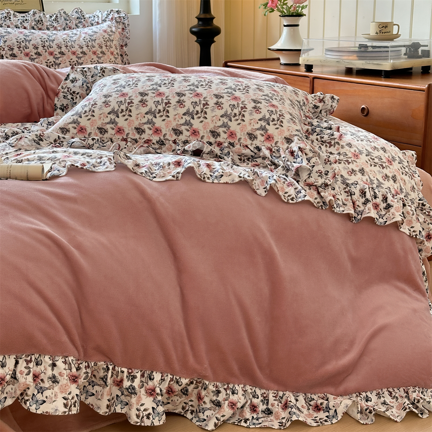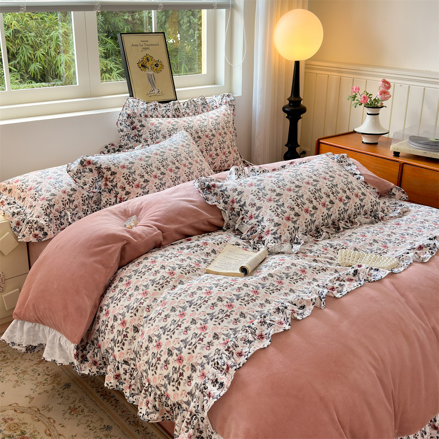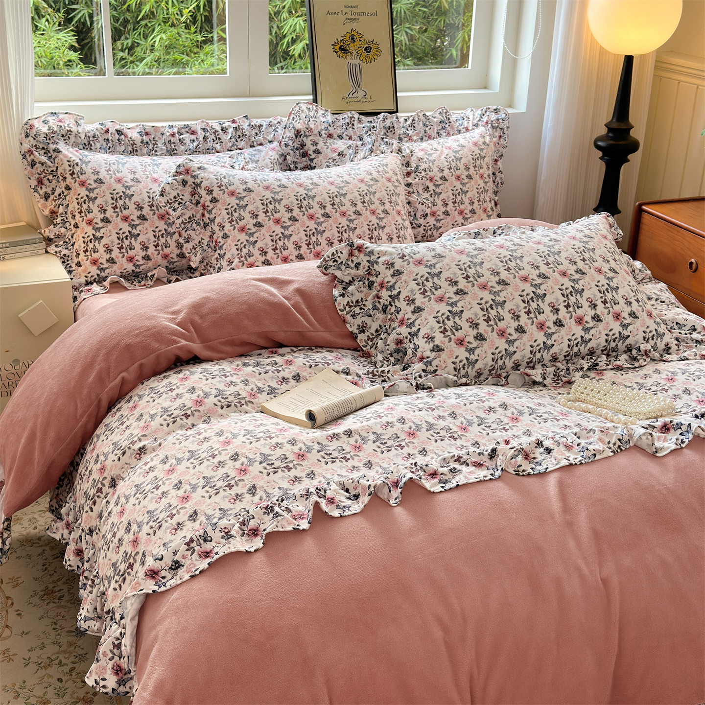 2025新款印花蝴蝶花边款牛奶绒宝宝绒四件套